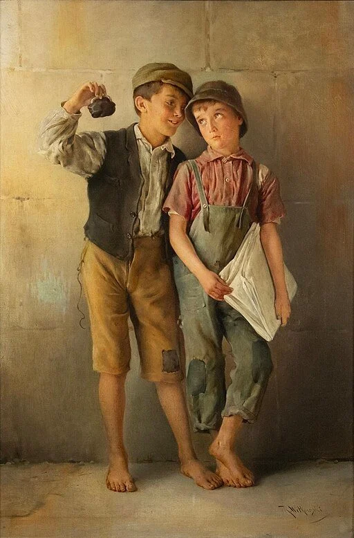 The Pickpocket and the Newsie, depicting New York Street Urchins by Karl Witkowski circa 1885, Public domain, via Wikimedia Commons